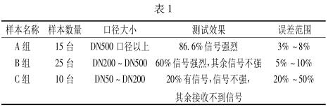 通過大量的在線檢測試驗,可以看出所測管道管徑對超聲流量計測試效果有明顯影響。根據(jù)數(shù)據(jù)顯示,管徑越大,測試效果越好,示值誤差越小。隨著管徑的減小,超聲流量計所能檢測到的流速信號也隨著變?nèi)酰斂趶叫∮?DN50 時,基本沒有信號或是產(chǎn)生巨大的干擾信號。