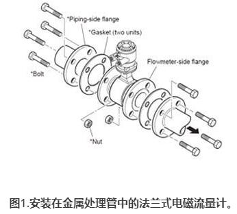 圖1.安裝在金屬處理管中的法蘭式高壓電磁流量計(jì)。