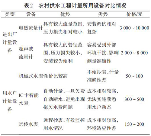 2 農(nóng)村供水工程計(jì)量設(shè)備使用及經(jīng)濟(jì)性分析