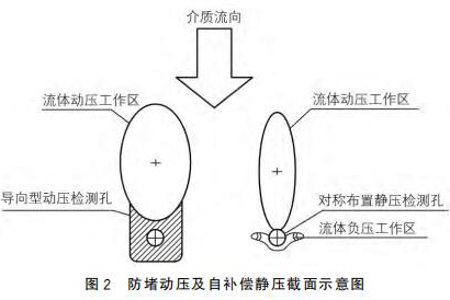 新泥漿管道流量計采用拋物面導(dǎo)向型結(jié)構(gòu)作為動壓測點,采用對稱自補(bǔ)償型式的靜壓測點,可以有效地解決來流方向偏流時信號的穩(wěn)定采集,來流偏離管道軸線時,可以維持輸出差壓基本不變,如圖2所示。