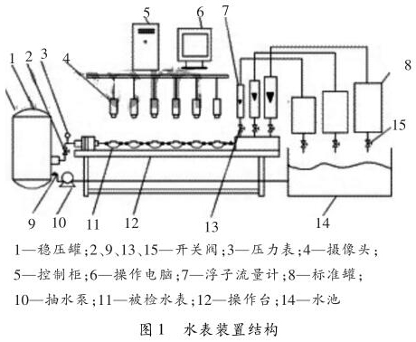 水表檢定裝置是全自動水表校驗裝置,水表檢定裝置以計算機為核心,它在需要檢定水表上方安裝攝像裝置,連接到圖像采集和高速計算器中,計算器可以識別水表指針的流量數(shù)值,自動控制水流量,實現(xiàn)水表檢驗的全自動化,針對水表檢定裝置存在的問題提出解決方案,減少水表檢定裝置在使用過程中出現(xiàn)質(zhì)量問題,讓水表檢定裝置可以不斷完善。