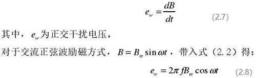 從上圖 2.5 中可以觀察到兩個電*、勵磁線圈、轉換器內(nèi)阻之間形成了一個閉合回路,將此回路稱之為初級繞組,從理論上進行分析,磁力線 B 應當平行于勵磁線圈所產(chǎn)生的磁感應線,但在實際的應用過程中由于工藝差異,因此無法達到理想狀態(tài),會產(chǎn)生磁力線穿過勵磁線圈磁感應線的情況,此時將會產(chǎn)生相應的感應電動勢,將此部分感應電動勢稱為變壓器效應。此效應同樣滿足于楞次定律,利用楞次定律進行計算可得如下電動勢: