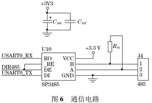 電鍍污水計(jì)量表輸出的流量值可以通過外接的 TFTLCD 屏直接顯示,還可以通過預(yù)留的 RS485 通信接口將數(shù)據(jù)發(fā)送到上位機(jī)中。RS485 電路*大的優(yōu)點(diǎn)是 485 電平與 TTL 電平兼容,方便與 TTL 電路相連;抗共模干擾能力強(qiáng);數(shù)據(jù)傳輸速度快,高達(dá) 10 Mbps;通信距離遠(yuǎn),*大為 1.2 km。系統(tǒng)采用 SP3485 芯片進(jìn)行數(shù)據(jù)通信,SP3485 是一款低功耗芯片且符合RS485 協(xié)議的收發(fā)器,電路圖如圖 6 所示。