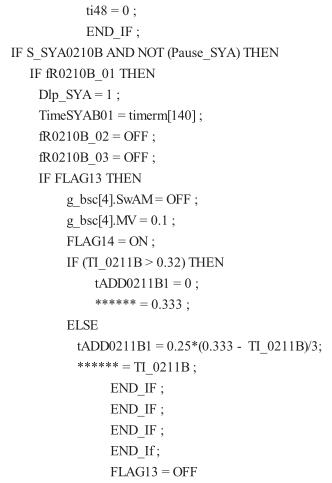 以脫溶回收二氯乙烷溶劑為例,將二氯乙烷升溫和脫溶過程分為三步,現場實際控制 PID 圖見圖 1,由于加熱滯后性比較大,夾套蒸汽閥的調節(jié)采用固定時間間隔調節(jié),控溫間隔為 300 s,即蒸汽調節(jié)閥的設定為每300 s 增加一個升溫梯度,不同階段升溫梯度不一樣,實際操作中又對蒸汽調節(jié)閥的*大開度進行限位,保證蒸汽閥開度不會太大,可以有效防止沖料的風險。