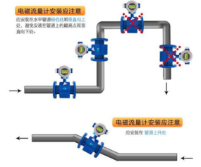 確保流量傳感器在測量時(shí),管道中充滿被測流體,不能出現(xiàn)非滿管狀態(tài)。