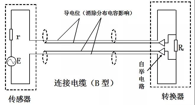 當(dāng)Ri>>r,C0(連接電纜二線間分布電容)很小時,Ei≈E;當(dāng)介質(zhì)電導(dǎo)率很低,轉(zhuǎn)換器輸入電壓衰減Ei,而C0分布電容并聯(lián)效應(yīng)顯著,且波形發(fā)生畸變。當(dāng)被檢測介質(zhì)電導(dǎo)率低,傳感器與轉(zhuǎn)換器間距長時,使用多重屏蔽電纜的概率越高。