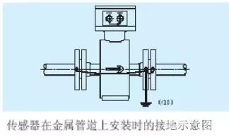 a.傳感器在金屬管道上安裝(金屬管道內(nèi)壁沒有絕緣涂層),按下圖接地。