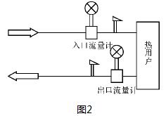 (2)雙表計(jì)量:使用兩個(gè)流量計(jì),兩個(gè)鉑電阻,一個(gè)熱量積算儀。如圖2所示。