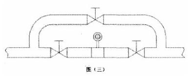 5.被測介質(zhì)是嚴(yán)重污濁液體過容易在管道結(jié)垢的液體,可以在安裝傳感器的測量管道上加一個(gè)旁通管,以便于拆卸清洗。如圖三所示。
