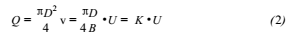 式(1)說明,導(dǎo)體在磁場(chǎng)內(nèi)作切割磁力線運(yùn)動(dòng),導(dǎo)體兩端產(chǎn)生的感應(yīng)電動(dòng)勢(shì)的大小與磁感應(yīng)強(qiáng)度B成正比,與導(dǎo)體的長(zhǎng)度D成正比,與導(dǎo)體運(yùn)動(dòng)的速度v成正比。由式(2)可知液體的體積流量與感應(yīng)電動(dòng)勢(shì)成正比,這就是潛水式電磁流量計(jì)的設(shè)計(jì)原理。