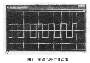 其中,Vp2是P2端口輸出電壓幅值的絕對(duì)值,此處應(yīng)該是+24V。整個(gè)電路是對(duì)稱的,且R15=R20,當(dāng)P2.9為低電平,P2.8為高電平時(shí),P2的端口2無電壓輸出,端口1輸出+24V的電壓,Vref(+)值不變,如此周而復(fù)始輸出頻率為6.25Hz的的雙*性矩形波。用Multisim仿真結(jié)果如圖3所示。