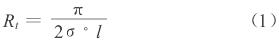 這里再次強調(diào),把被測量的液體導電介質(zhì)視為零電阻,然后作為差動流量信號的基準點。理論上講,基準點值越小越好,越小其電阻值越接近于零,差動信號幅值分的就越相等。這就是說,被測導電流體應(yīng)是在大面積的容器內(nèi),或者處在長管線的管道中。在文獻[1]中已作分析,流體的體電阻Rt可由電阻率公式求得: